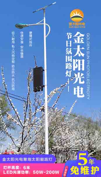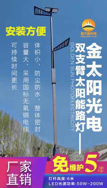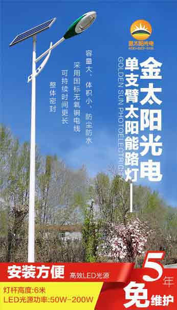 黑龍江金太陽(yáng)光電自主研發(fā)設(shè)計(jì)的新款太陽(yáng)能路燈上市,歡迎新老客戶前來(lái)淺談業(yè)務(wù)。